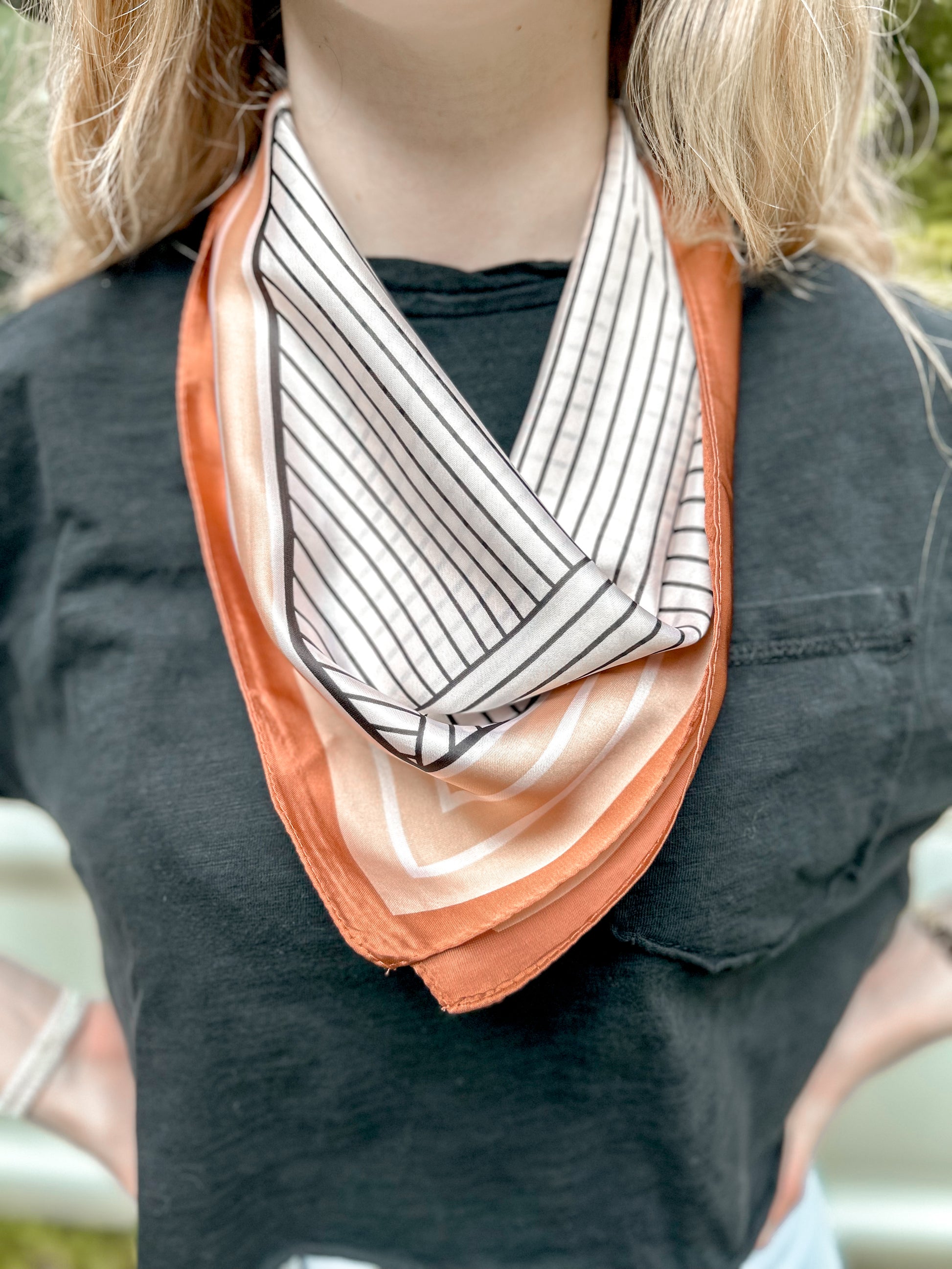 Wrap yourself in the rich tones of the Rust Wild Rag. Featuring a variety of rust colors and minimal patterns, this wild rag is the perfect accessory for any outfit. Embrace your unique style and stand out from the crowd with this versatile and eye-catching addition to your wardrobe.